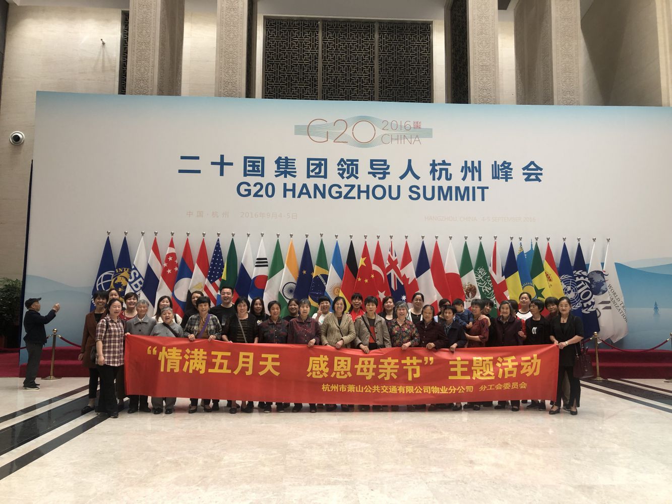 上午9時許,分工會優秀職工代表與母親在通惠路公交站集合,一同乘坐旅游大巴前往杭州國博中心進行參觀。在國博現場,分工會貼心地為大家安排了專業解說員陪同講解,在迎賓區、在主會場、在宴會區,大家紛紛駐足游覽、細聽介紹、留影紀念。一個多小時的參觀游覽,令在場的所有人留下許多美好記憶。母親們紛紛贊嘆說,這里這么大氣,又這么精致,真正體現了“大國風范、江南特色、杭州元素”,作為杭州的市民,感到非常自豪。”活動最后,分工會負責人做了總結發言,并代表公司工會提前預祝母親們節日快樂,活動在一片熱烈的掌聲中圓滿結束。