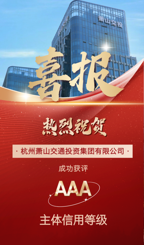 2024年11月 蕭山交投集團獲評AAA主體信用評級
