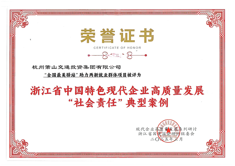 2025年3月 “全國最美驛站”助力兩新就業群體項目被評為浙江省企業高質量發展“社會責任”典型案例