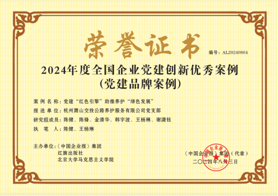 2024年8月 集團黨委下屬交投養護公司黨支部獲評2024年度全國黨建創新優秀案例(黨建品牌案例)